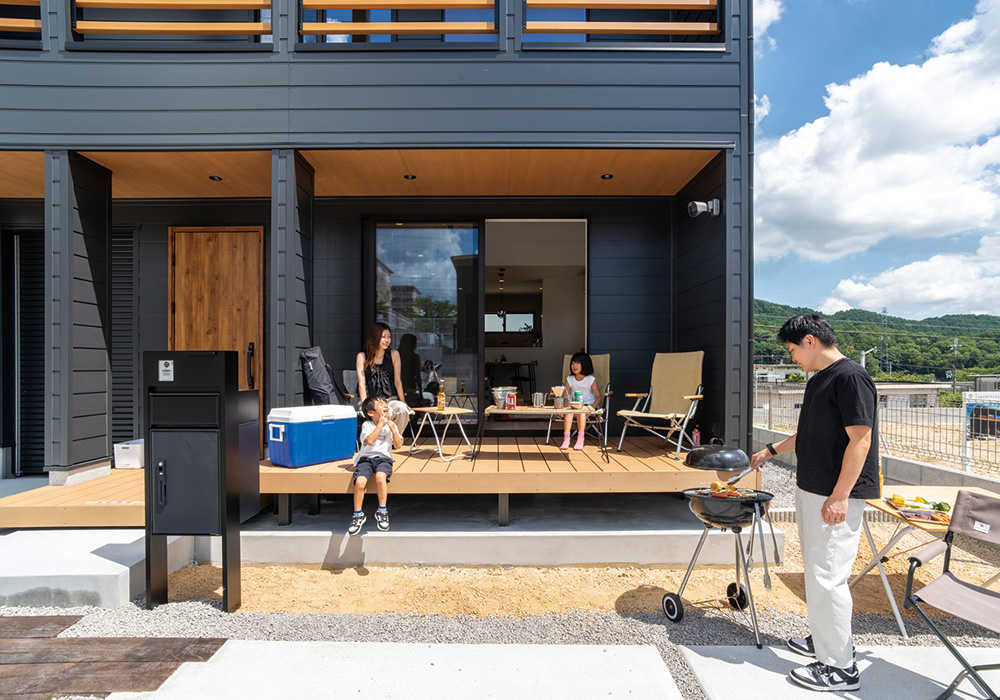 ようこそ、アウトドアな我が家へ!居心地のいいオープンテラスに、お気に入りのギアを備え、料理はいつものBBQスタイル。家族の楽しげな笑顔も嬉しい。FRANK HOUSEは、あなたのライフスタイルにフィットする理想の暮らしを叶えます。